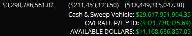 There is a big up rip after the Bell, now about +472M, so the weight is still long. I tried to balance it, but there will be a lot more to go to flatten an apparent Santa Claus rally. P/L YTD will drop to Zero on New Year's of course. It's that quirky calendar year versus fiscal year thing.